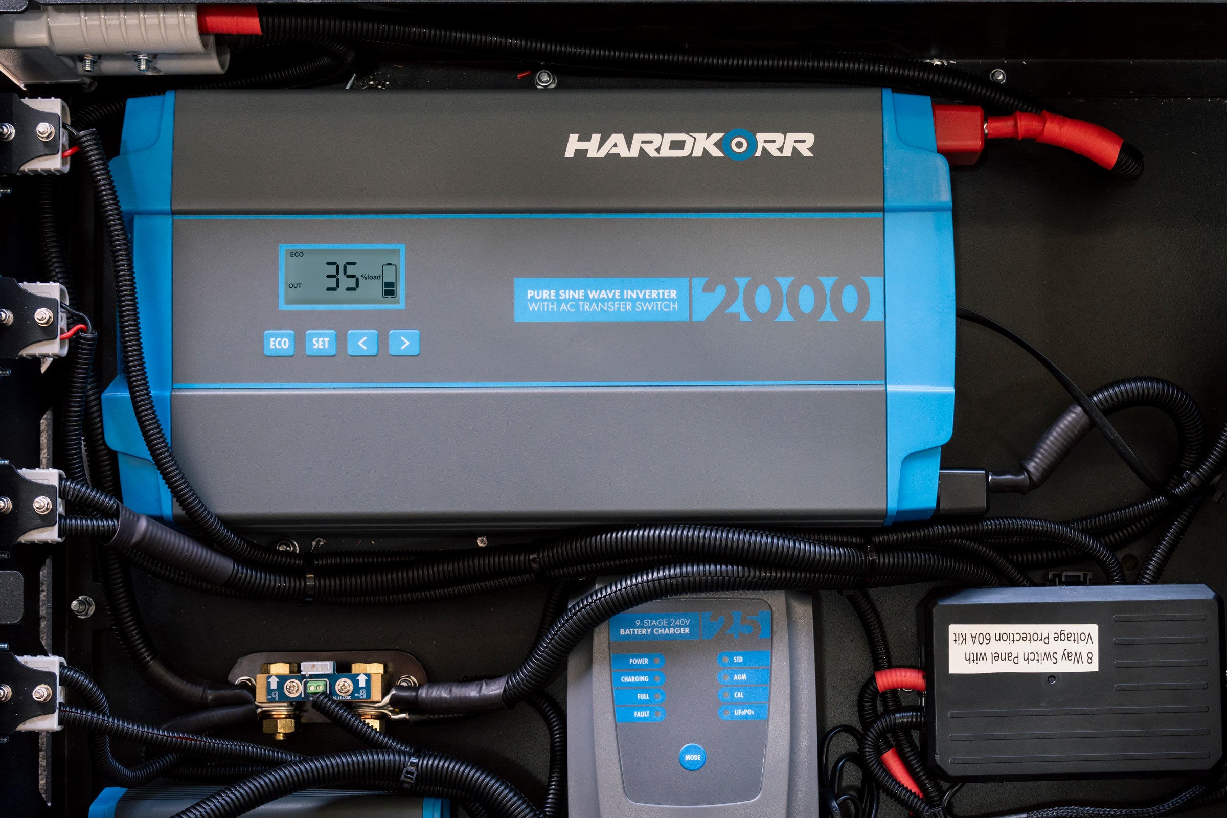 Hardkorr inverters produce consistent, smooth and clean power just like you’d get from a mains connection. The pure sine waveform has very low harmonic distortion, resulting in a high power factor. This means much lower radio interference, reduced audible and electrical noise, and more efficient operation for inductive loads. It also allows a wider range of devices to be powered from the inverter, some of which may be susceptible to damage if using a modified sine wave inverter. Our inverters are also built to surge up to 2000W which makes it ideal for any appliance that requires a higher start up wattage.