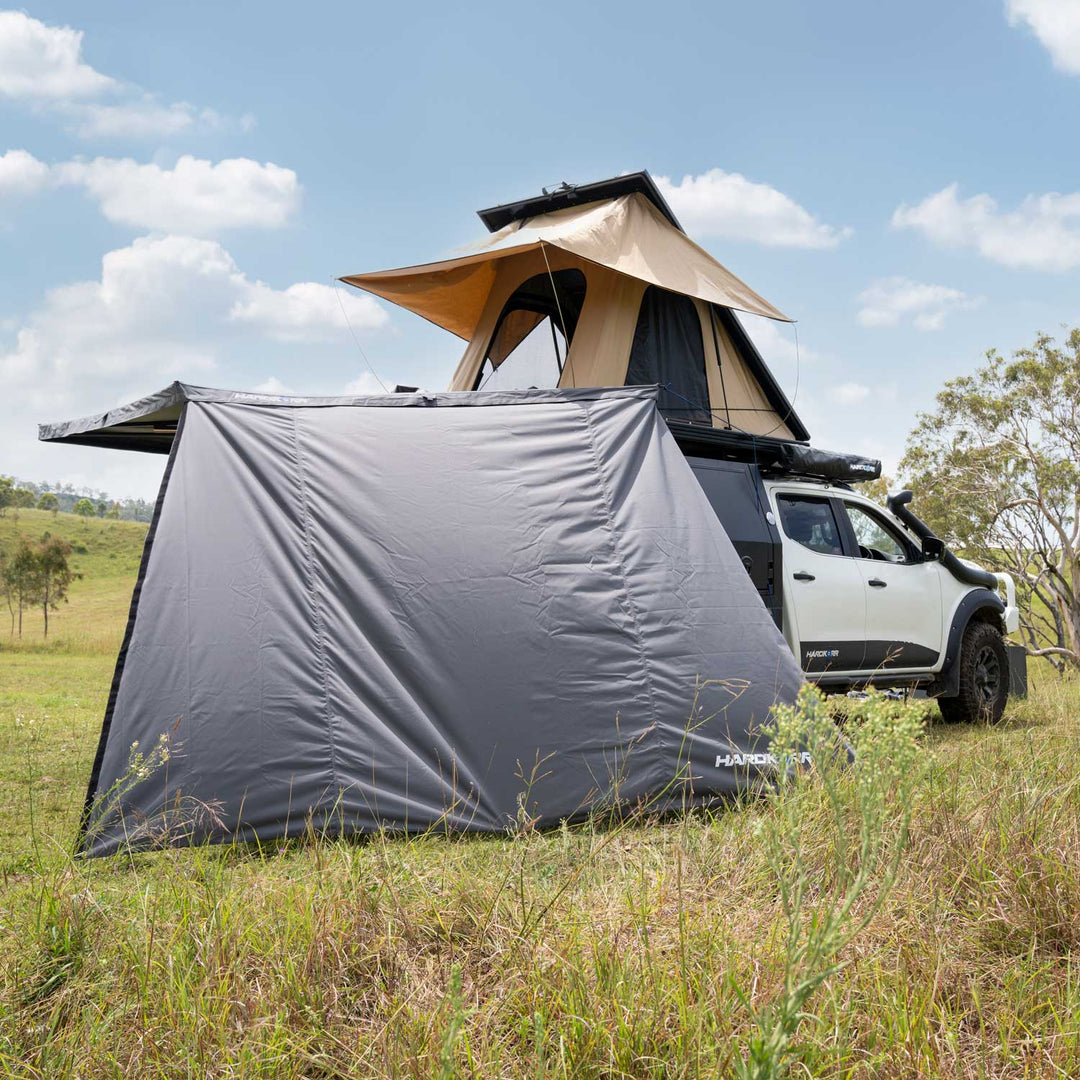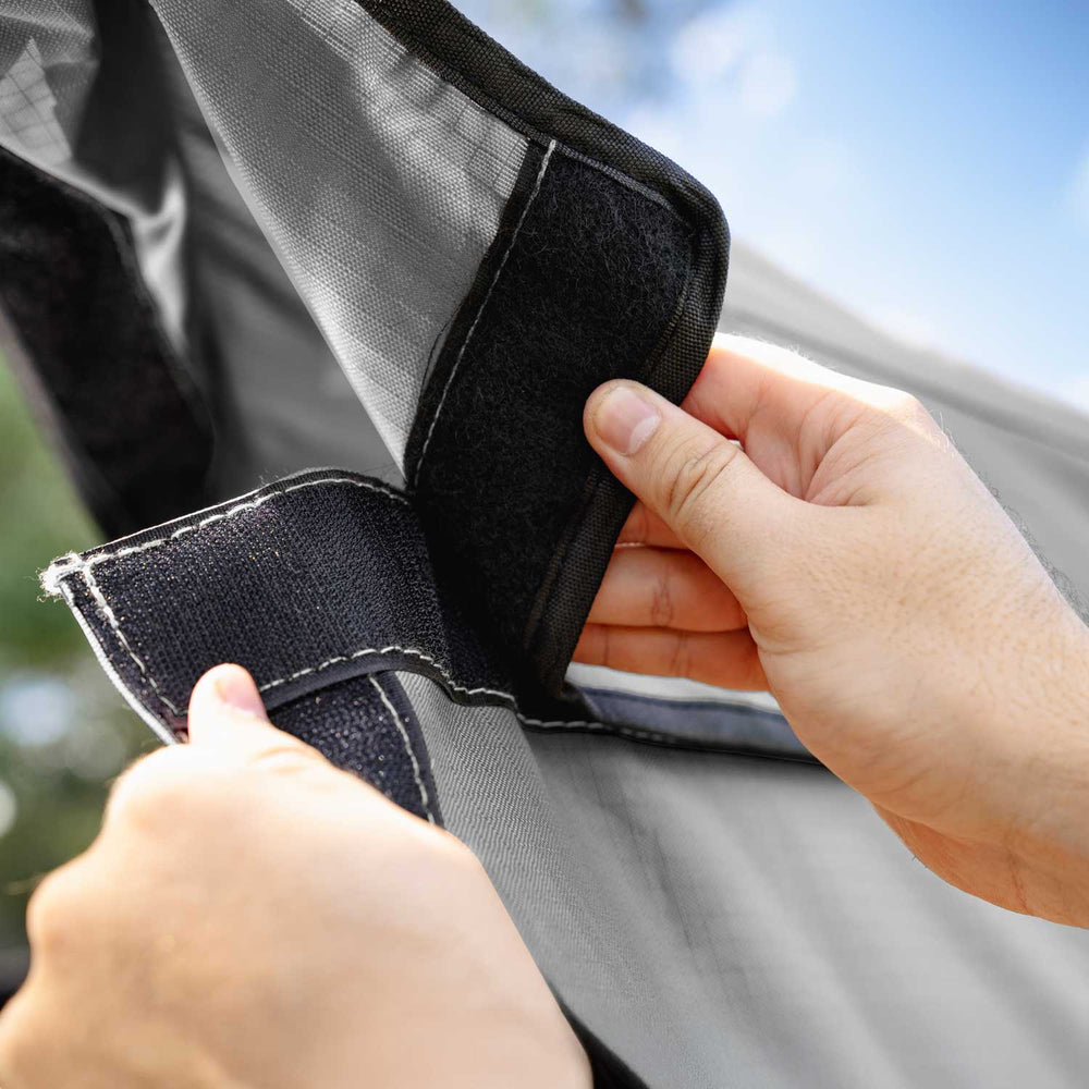 Turn your Hardkorr 270° Extra-Large Free Standing Awning into an extra living space. Fitted using 50mm / 1.9in Velcro, the walls simply fasten to the awning roof and peg into the ground, giving you extra shelter from the sun, wind and rain in an instant.