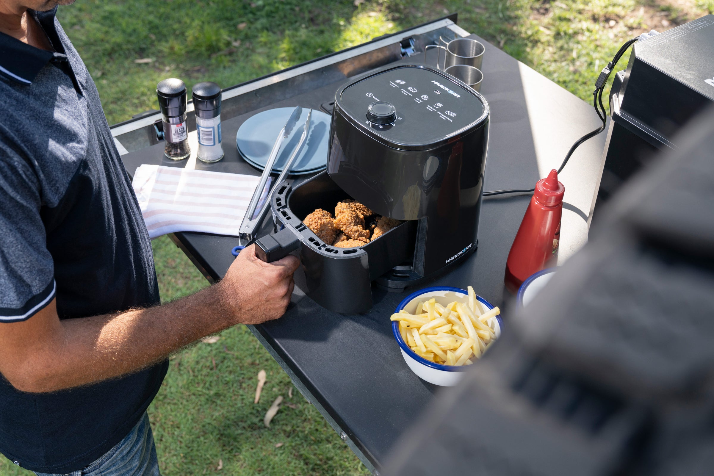Take the convenience of the kitchen out on the road with the Hardkorr 12V Air Fryer. Get crispy, delicious results on all your favourites and the oil-free benefits of air-frying wherever camp is set up for the night. Fill up, fry up and feast!