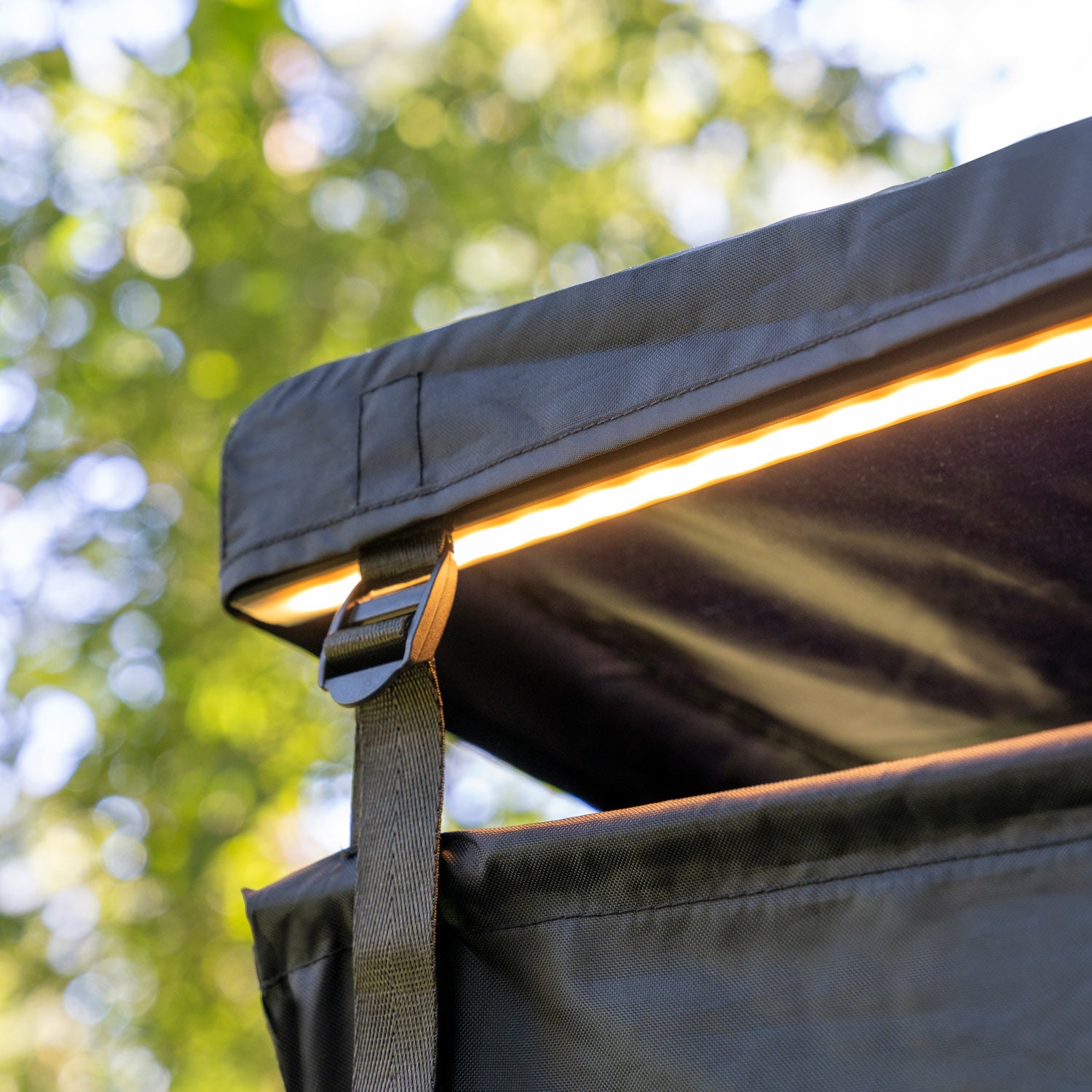 Completely adjustable in height, the tent can be lengthened with the roof piece intact, to give you a shower room over two metres in height, simply by adjusting the straps found at the top of the tent. The velcro roof piece is perfect for when using the tent as a change room, giving you total cover from rain.
