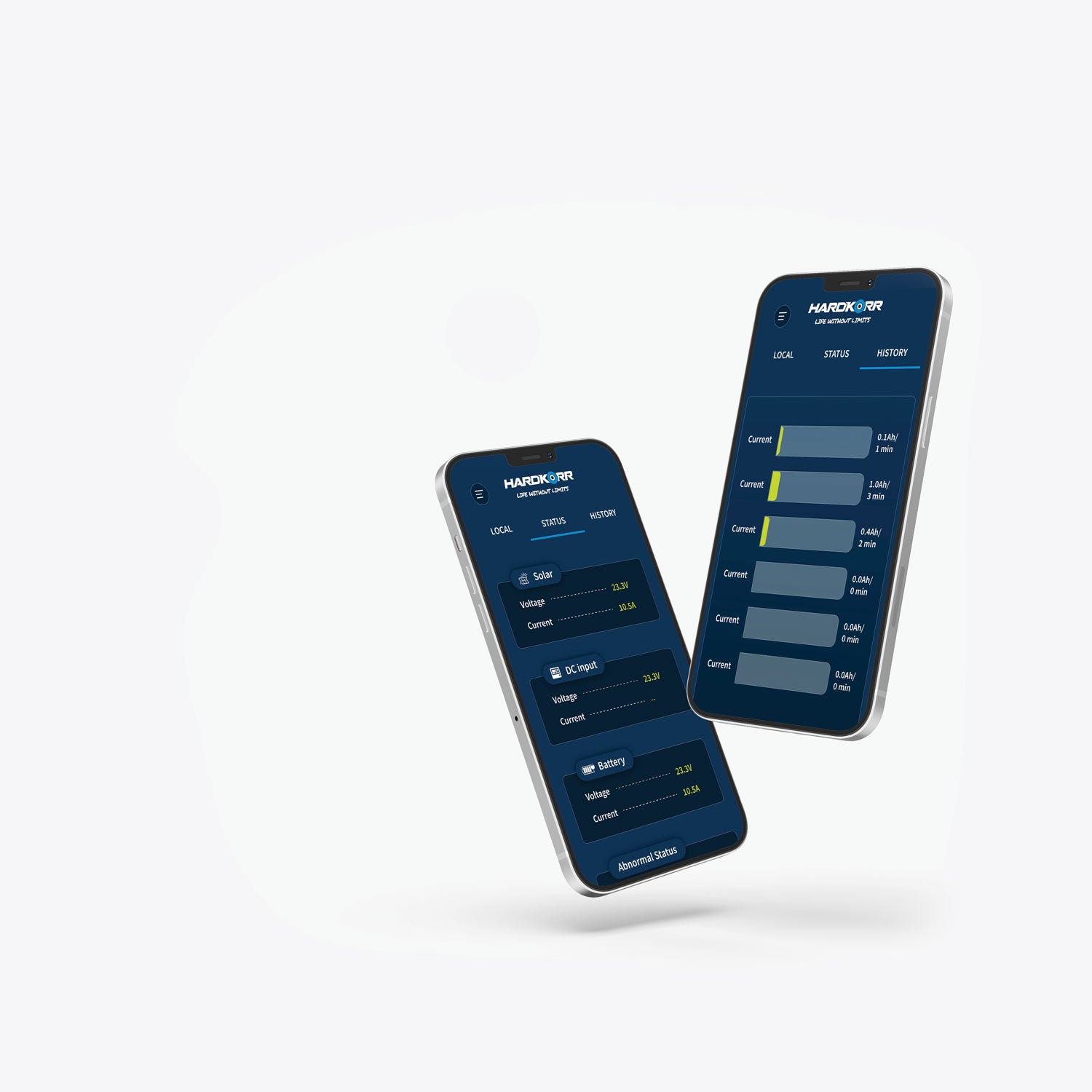Our DC-DC is compatible with the “Hardkorr DC-DC Charger” app, available on the Google Play and App Store. At the press of a button, the app will give you access to a live feed on your batteries, solar and DC input.