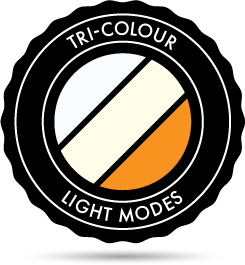 - NEW Tri-colour dimmers: allows you to select between cool white, warm white and orange light at the touch of a button
