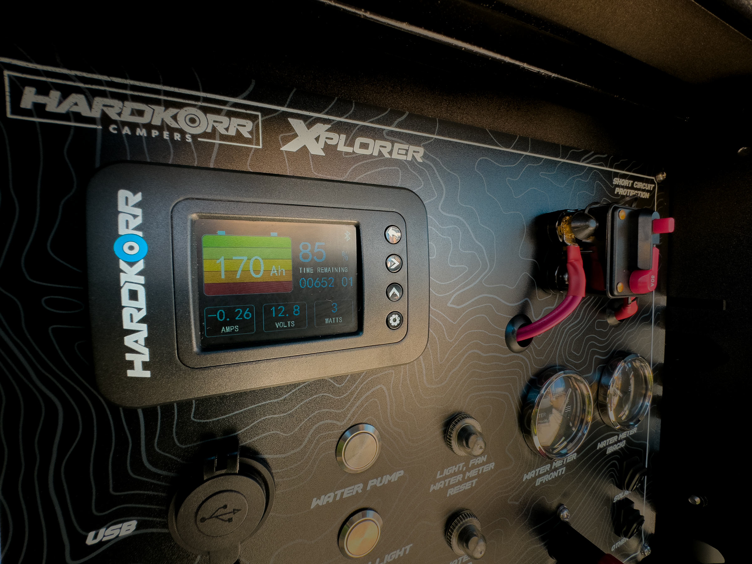 This battery monitor, also known as a coulometer, displays essential battery information through its full-colour LCD screen or by connecting your smartphone via Bluetooth®. By using a 500A shunt, highly accurate data is collected, such as charge level (Ah and %), live current draw (A), live voltage (V) and live watts (W). The monitor also includes an integrated alarm function to alert you when your battery is discharged to a set level and short circuit and reverse polarity protection technology.