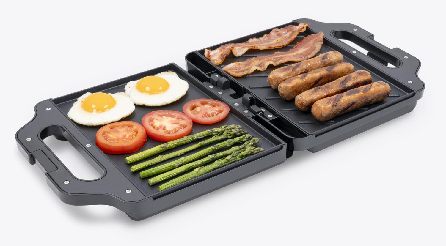 For a hearty breakfast, turn the press into a hot plate with the full 180º folding and cook your snags, bacon, and even eggs to your liking.