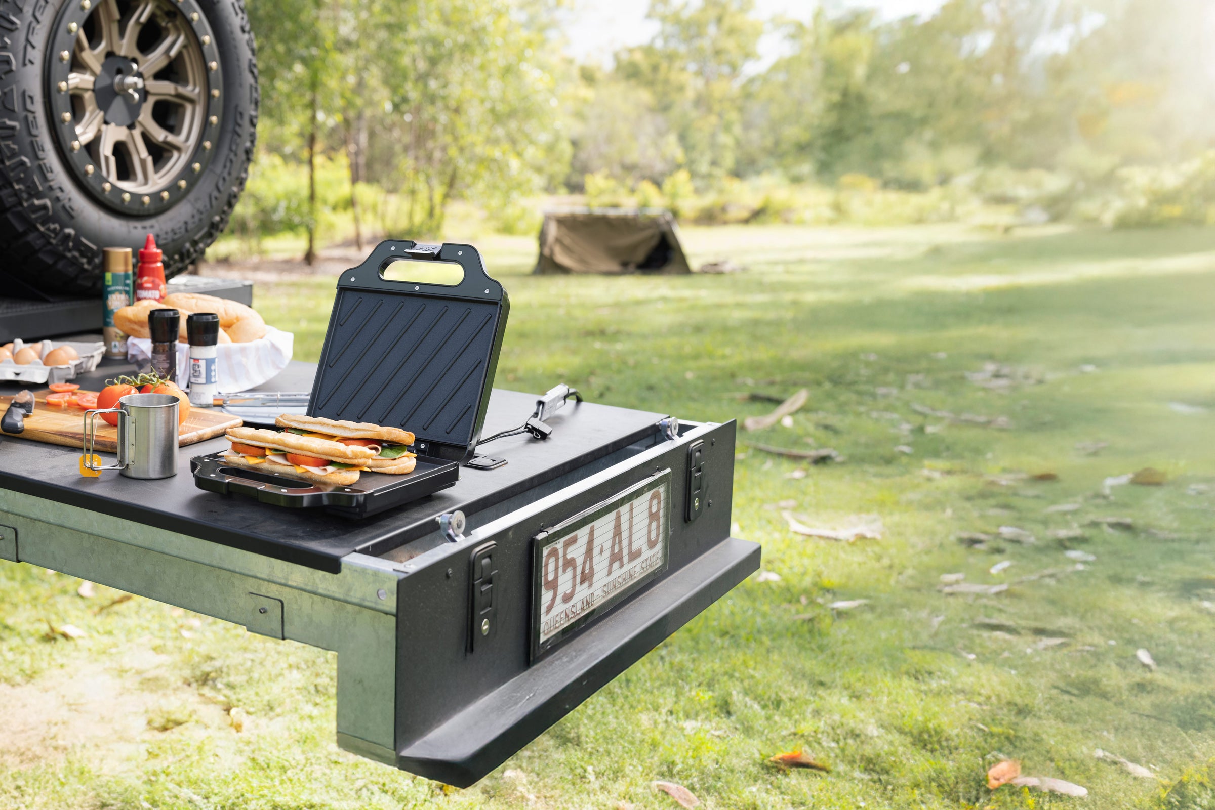 Make toasted sandwiches and big brekkies wherever your next trip takes you. With two large 170x230mm cooking surfaces, this sandwich press is perfect for when the smoko van or your camp snacks just won't cut it. Simply connect it to your battery via the Anderson-style connector and get toasting! Toasties done in 10 minutes!