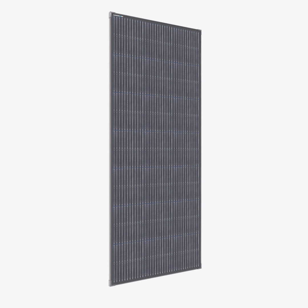 These panels feature A-grade monocrystalline solar cells for maximum efficiency and durability. The solar cells are protected by 3.2mm tempered low-iron glass, which is optically clear and highly resistant to impacts from hail, stones, and accidental knocks. The robust 25mm anodized aluminum frame ensures enhanced performance and long-lasting durability in challenging environments.
